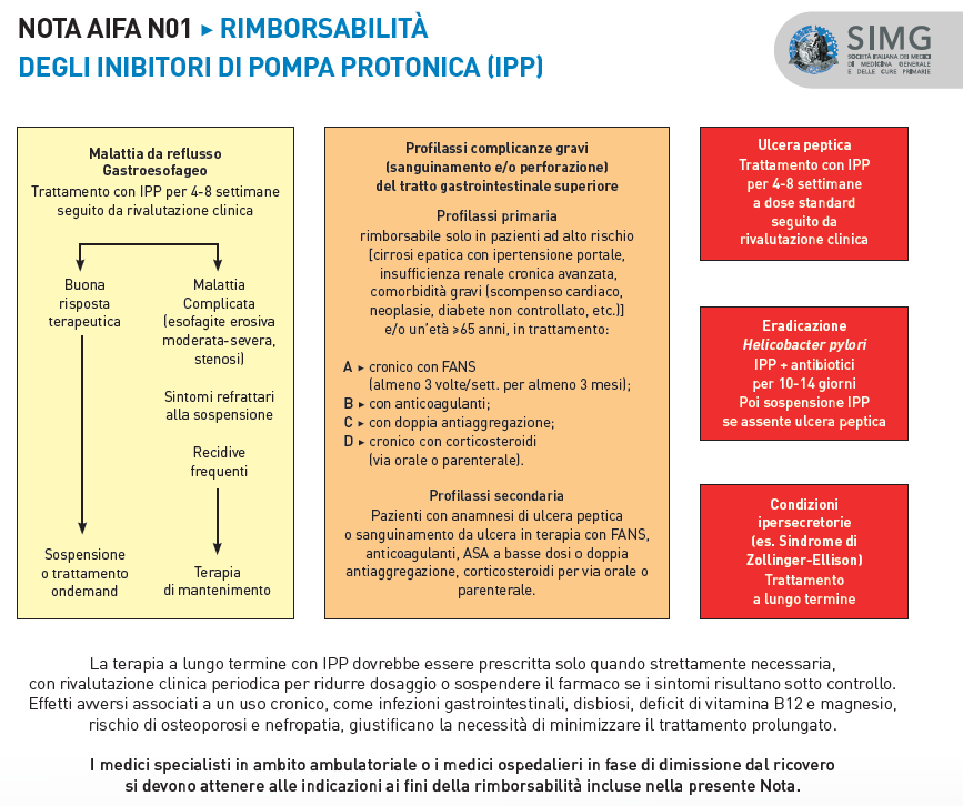 Guida pratica sulla rimborsabilità degli inibitori di pompa protonica secondo Nota AIFA N01