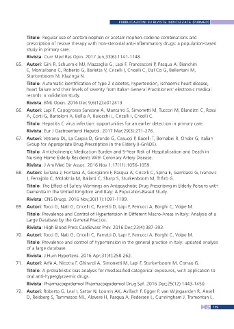 66. Autori: Lapi F, Capogrosso Sansone A, Mantarro S, Simonetti M, Tuccori M, Blandizzi C, Rossi