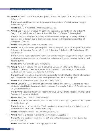 105. Autori: Trifirò G, Tillati S, Spina E, Ferrajolo C, Alacqua M, Aguglia E, Rizzi L, Caputi AP, Cricelli