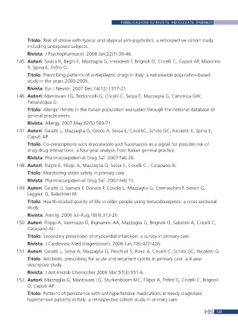 147. Autori: Galatti L, Mazzaglia G, Greco A, Sessa E, CricelliC, Schito GC, Nicoletti E, Spina E,