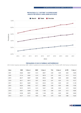 PREVALENZA D’USO DI FARMACI ANTIDEPRESSIVI